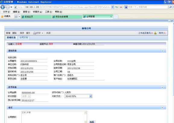 廣告行業管理軟件合同管理頁面